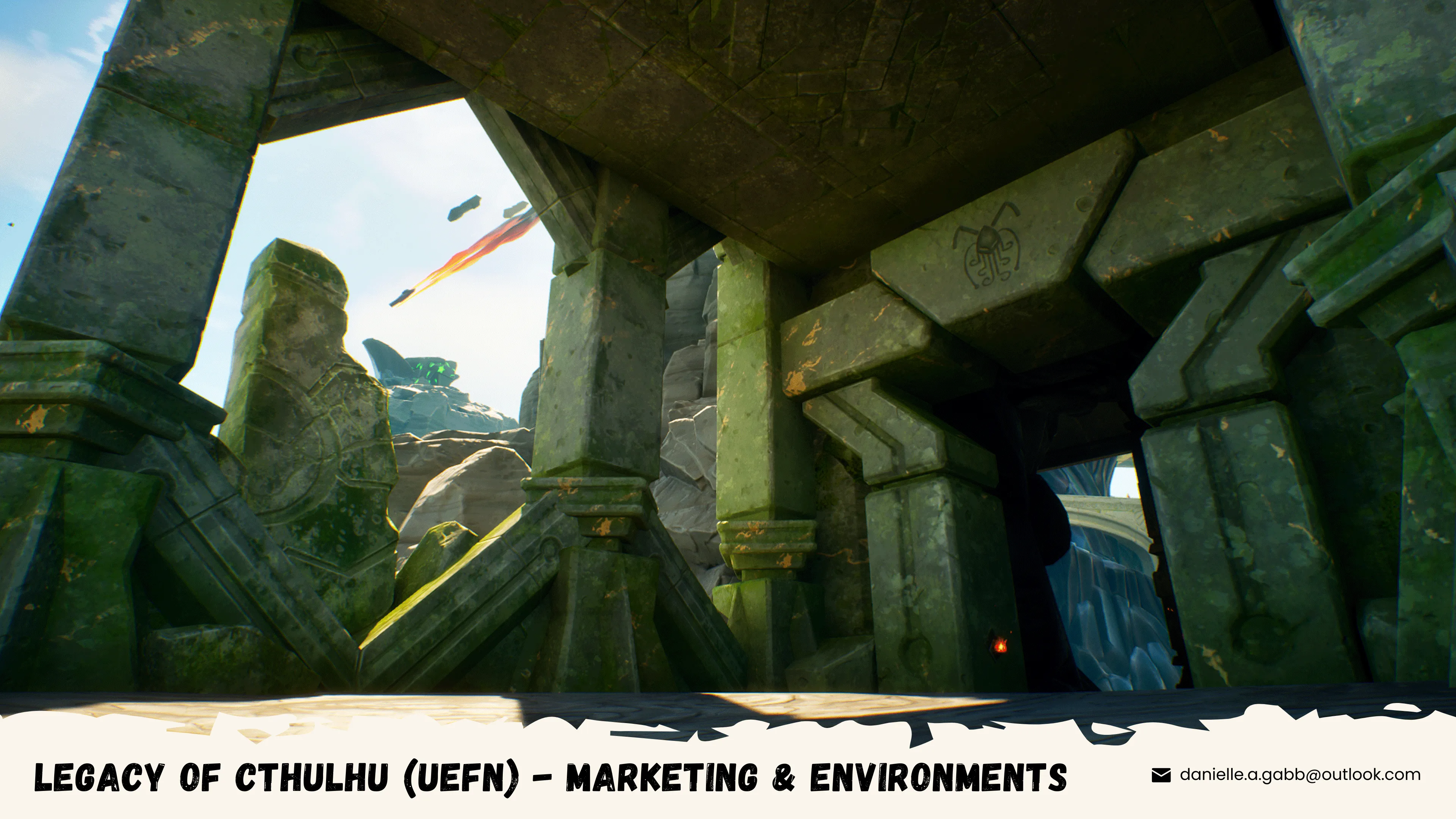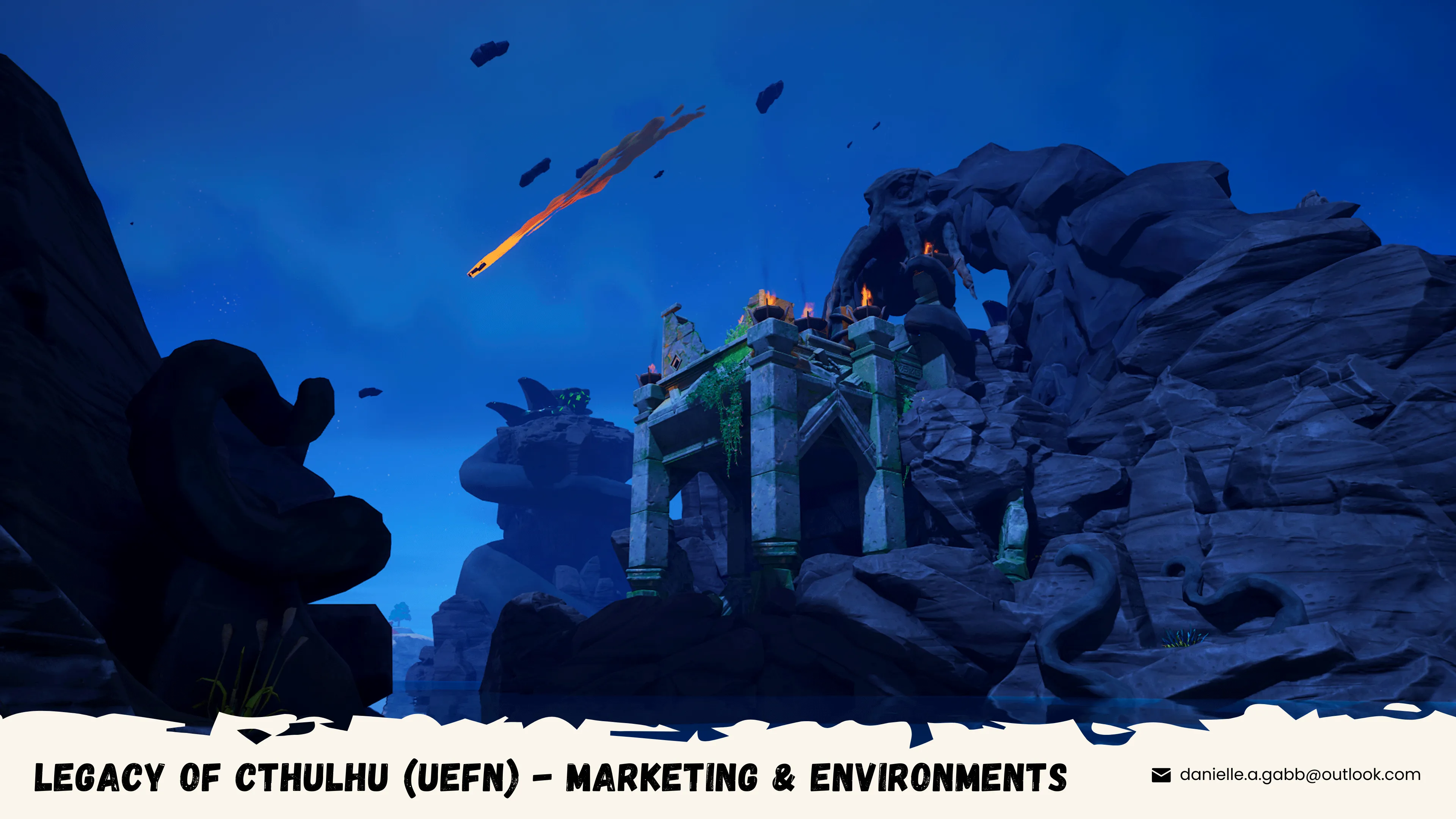 A Lovecraftian-themed custom map developed in Unreal Engine for Fortnite, designed to seamlessly match Fortnite's established art style while introducing a unique cosmic horror twist.