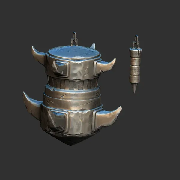 Here is a mace pro used for early design in Gods Unchained. I have made this prop low-poly for optimization and stylized to fit with the already created art style. From low-poly in Maya i used Zbrush to create the hammered metal and wooden design then put it into substance painter for the texturing and final touches. This model was created for the use within the Unity Engine and has such following optimized texture packing necessary.